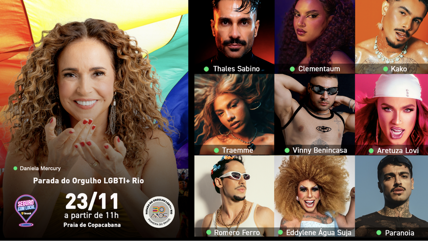 O coração da ativação será o Trio do Grindr, com apresentações ao vivo que refletem a diversidade e a energia da comunidade LGBTQIA+ brasileira — liderado por Daniela Mercury, com Aretuza Lovi, Romero Ferro, Traemme, Kako e Eddylene Água Suja, além dos DJs Thales Sabino, Vini Benincasa + Paranoia e Clementaum.