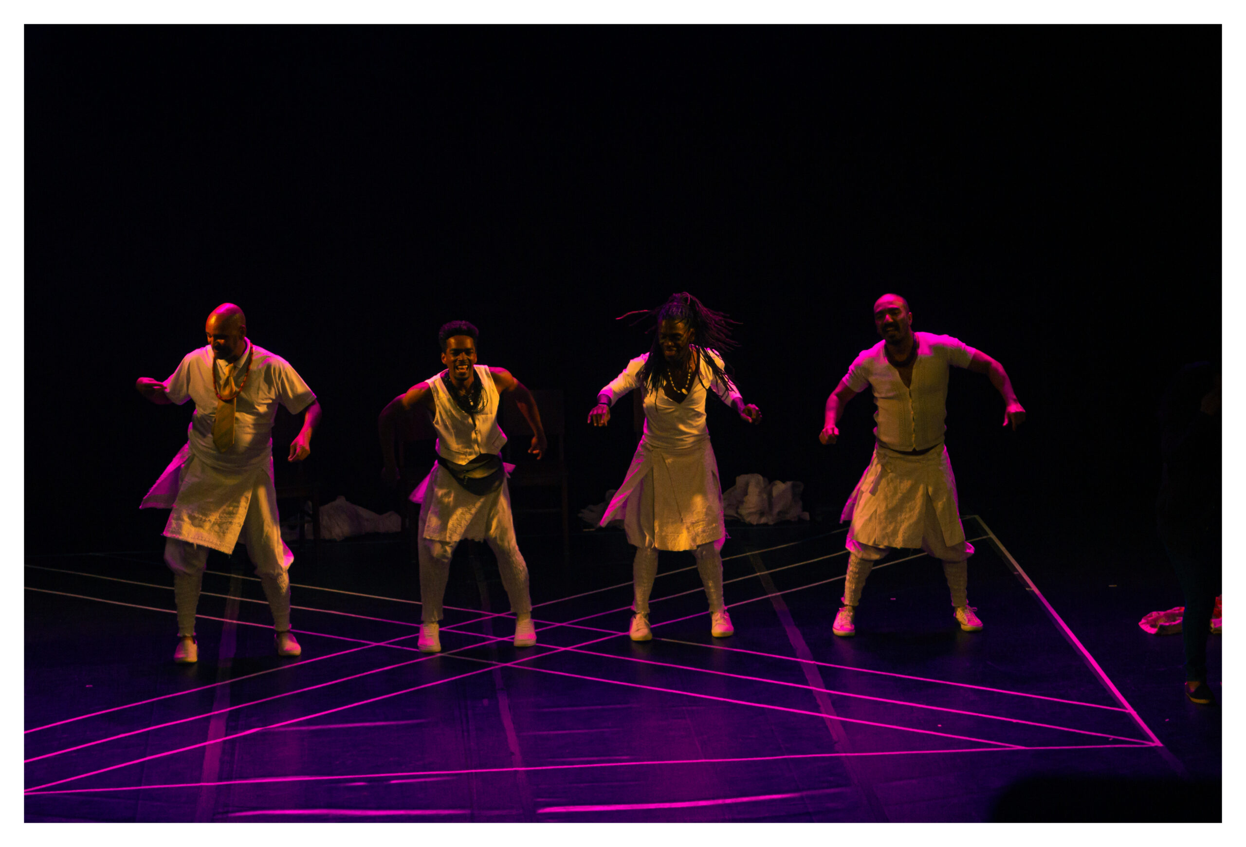 A montagem traz à cena a narrativa de quatro homens pretos de diferentes comunidades do Rio de Janeiro e de São Paulo